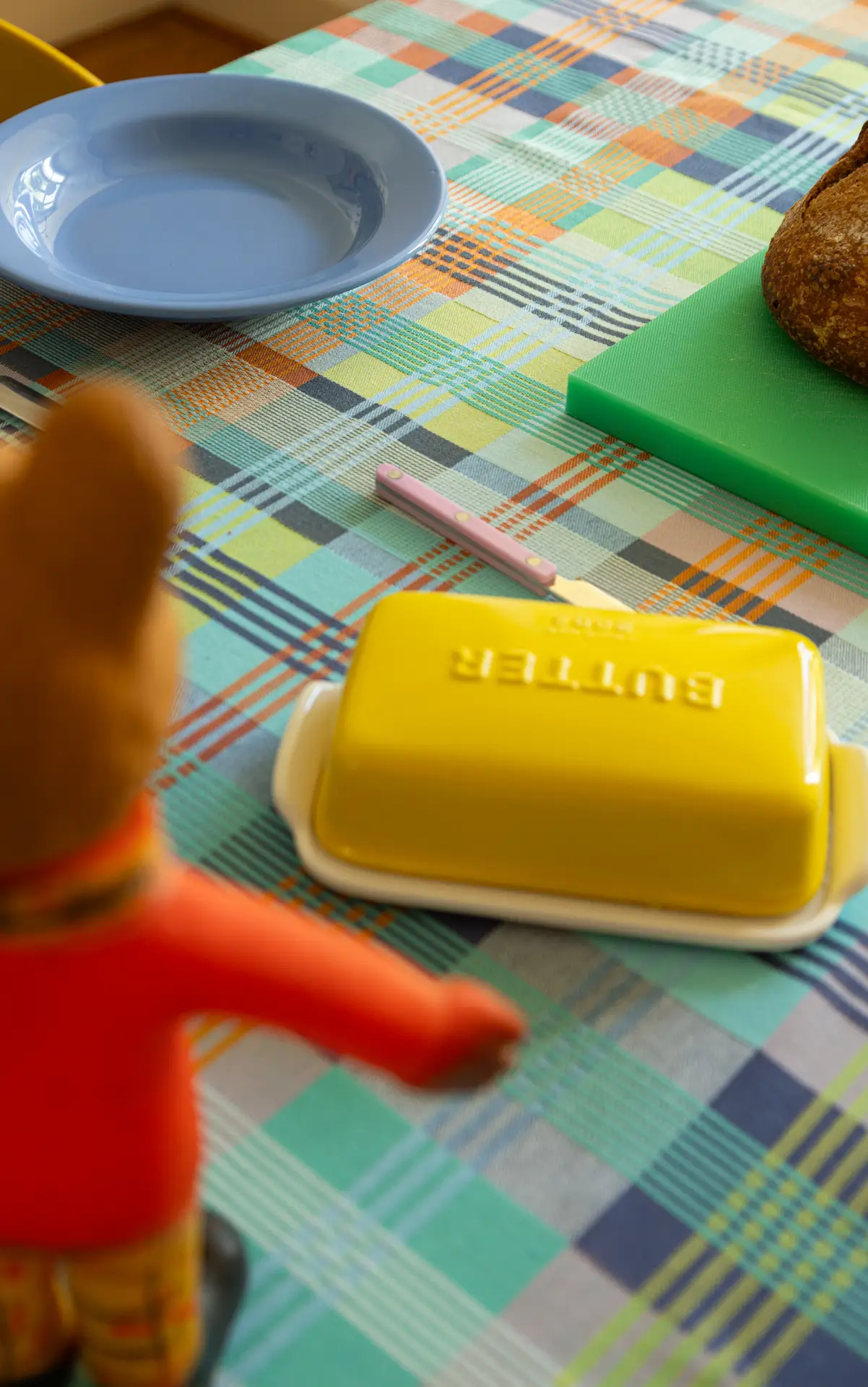 Recognize a Odds & Ends towel by it’s signature striped hem. Each item in the collection comes with this hem that is made on a jacquard machine.