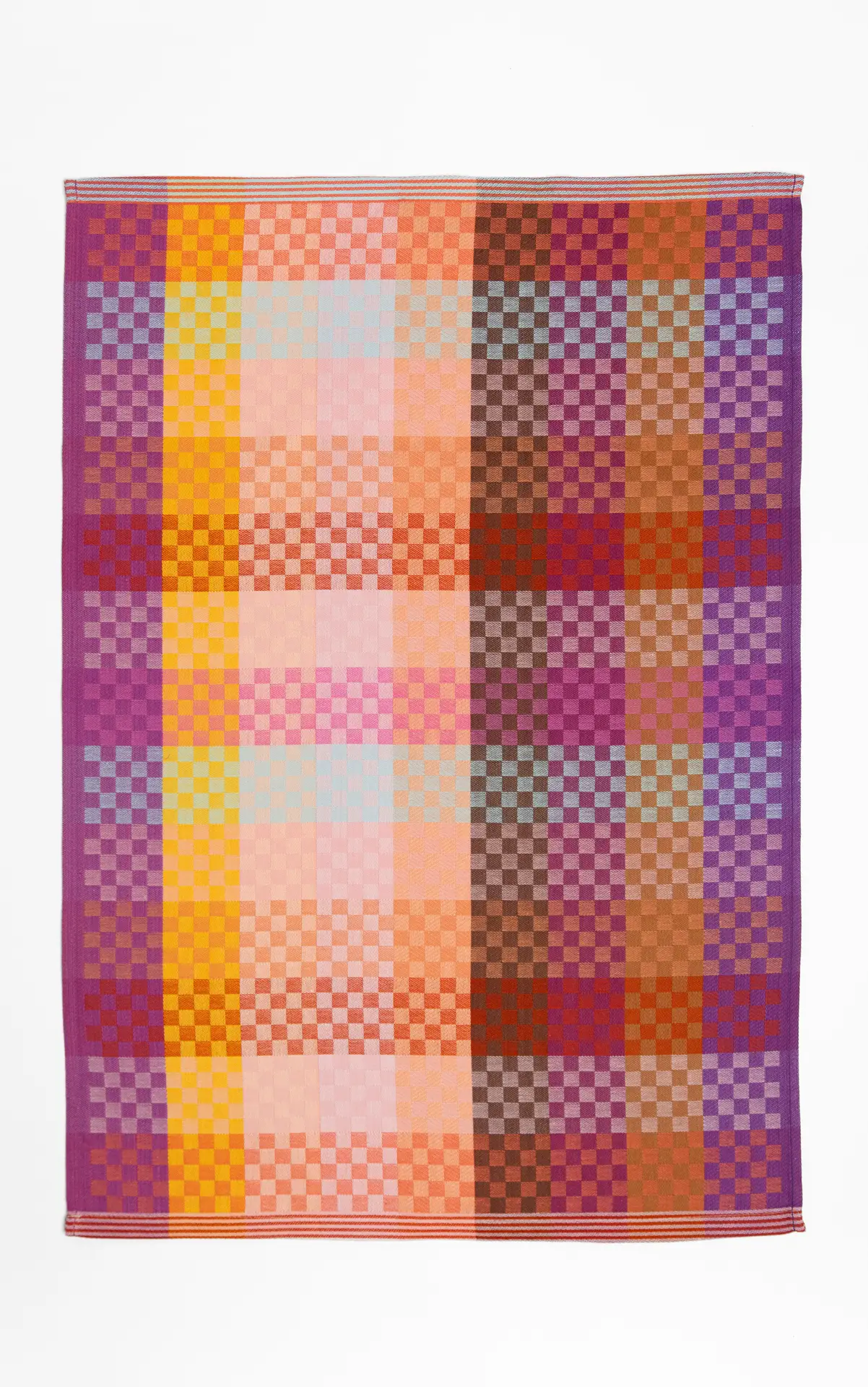 Our tea towels measure 70 x 50 cm, weigh 250 gms, and come with a hanging loop. Originating in Northern Europe, tea towels are used to dry dishes so they can be put away immediately without a drying rack. Our version is flat-woven on a jacquard loom.